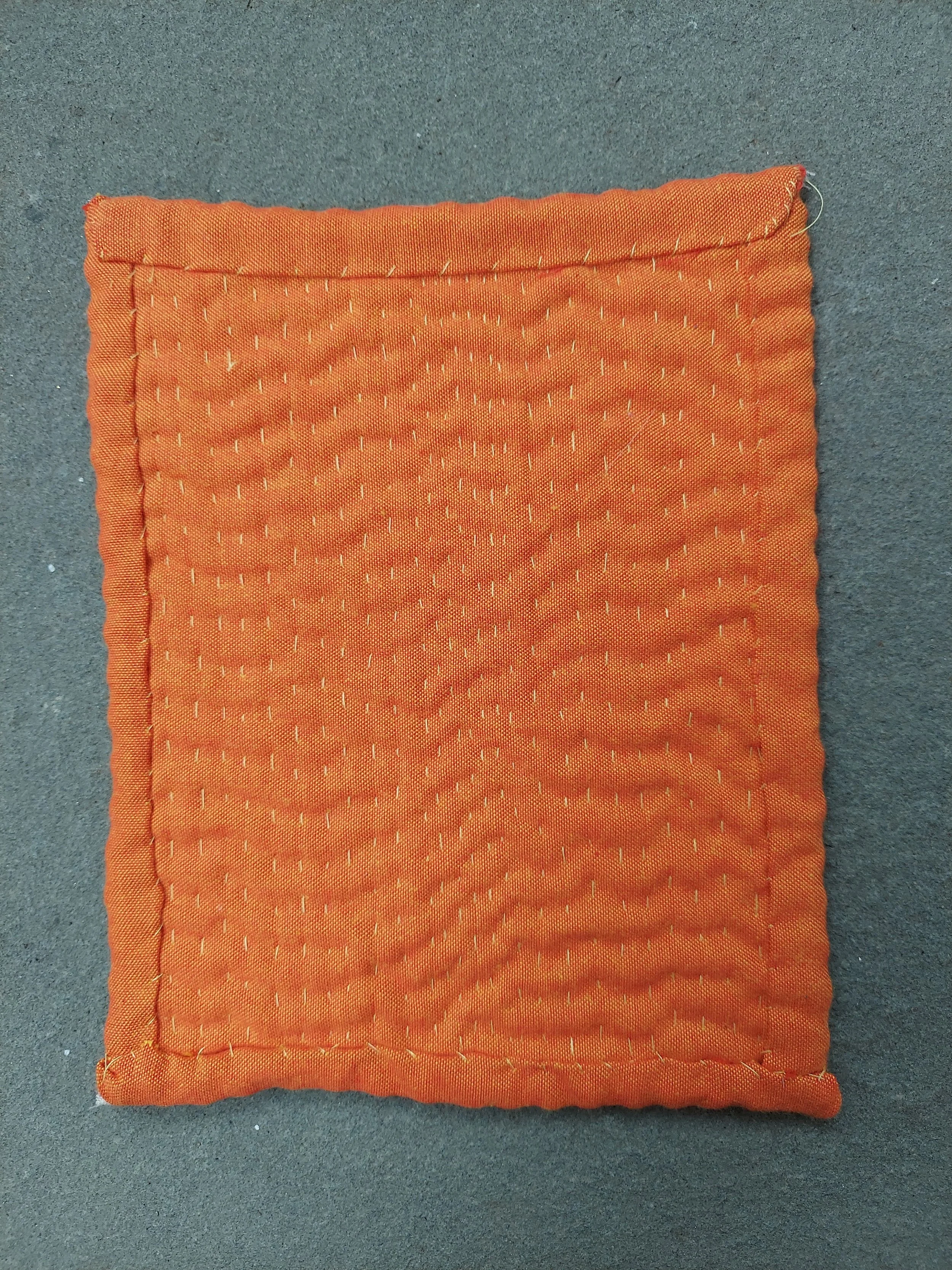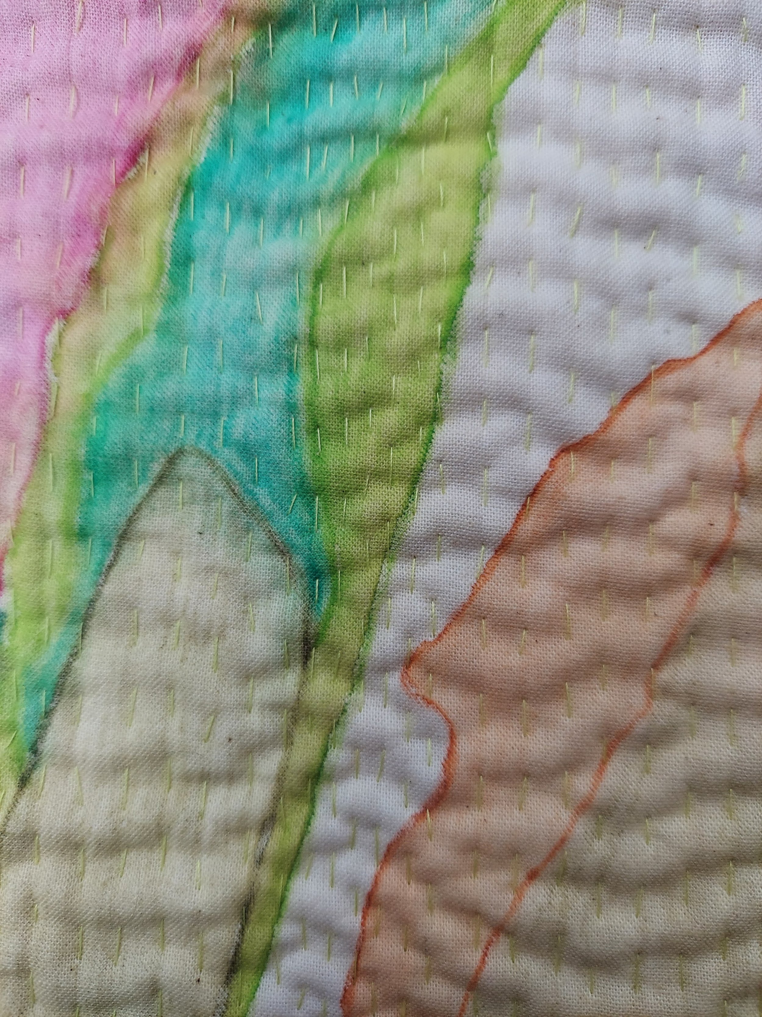 Had I had access to my sewing machine, my original idea was to matchstick quilt lines with electric yellow thread, and I liked the idea of exploring matchstick quilting by hand. So I packed the same thread (50wt) and used the same method I use to matchstick quilt by machine - continually subdividing the quilt with increasingly more dense lines of stitching. The process and experience went very well, it doesn’t have the exact same effect as matchstick quilting by machine, but it was very fun to do and something I’d like to explore more.